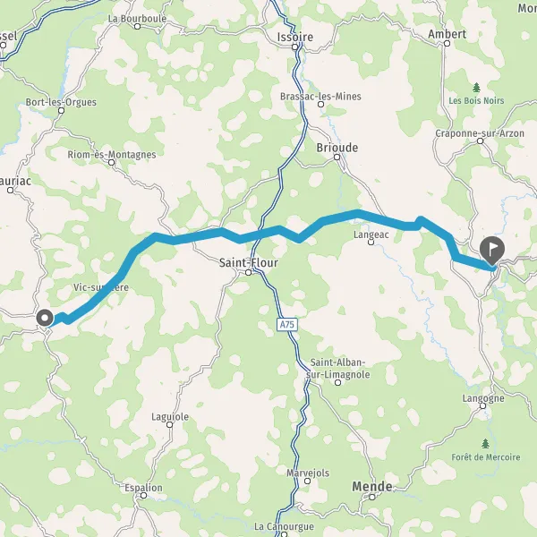 Tourner à droite sur N102 (Route du Velay) et continuer sur 20 kilomètres