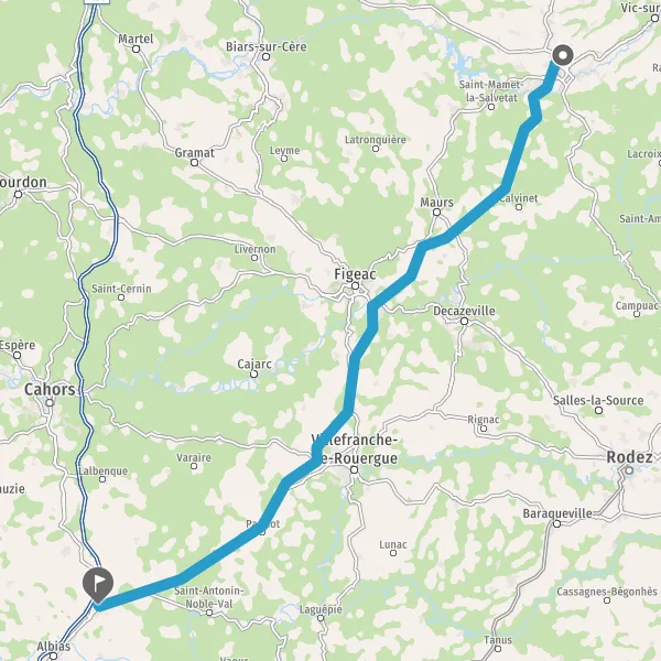Tourner légèrement à droite sur N122 (Avenue du Quercy) et continuer sur 14 kilomètres