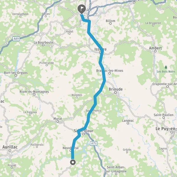 Prendre à droite et rejoindre A75 E11. Continuer sur 83 kilomètres