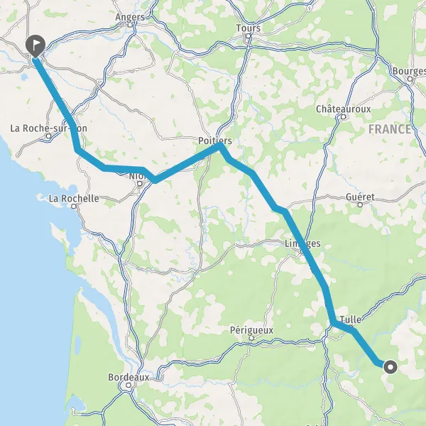 Prendre à droite et rejoindre A83. Continuer sur 150 kilomètres