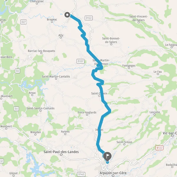 Tourner légèrement à gauche sur D38 (Route de Mauriac) et continuer sur 1,5 kilomètre