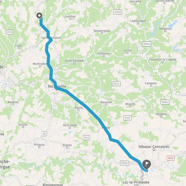 Au rond-point, prendre la 1ère sortie sur D840 (Route de Decazeville) et continuer sur 5,6 kilomètres