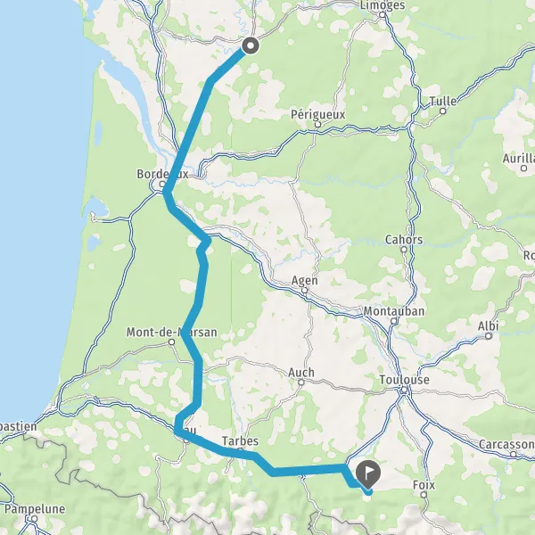 Prendre à gauche et rejoindre A62 E72. Continuer sur 224 kilomètres