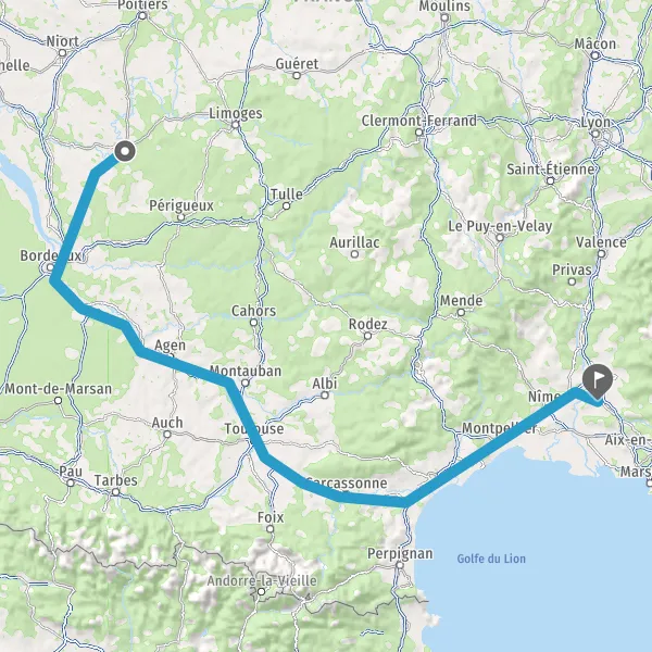 Prendre à gauche et rejoindre A62 E72. Continuer sur 224 kilomètres