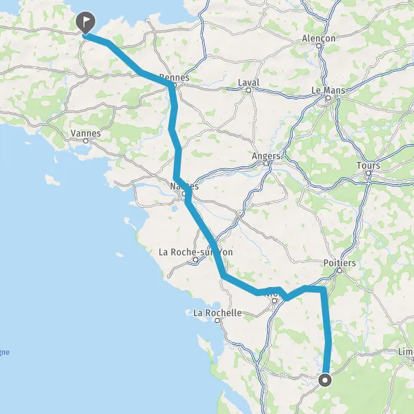 Prendre à droite et rejoindre A83. Continuer sur 150 kilomètres