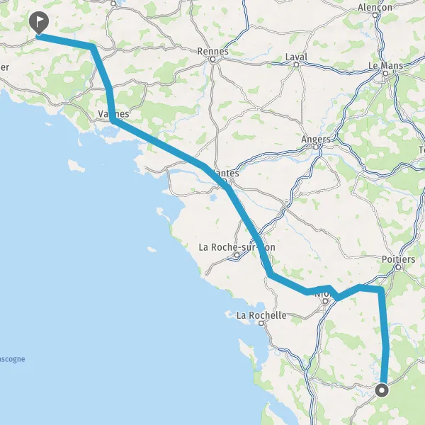 Prendre à droite et rejoindre A83. Continuer sur 150 kilomètres