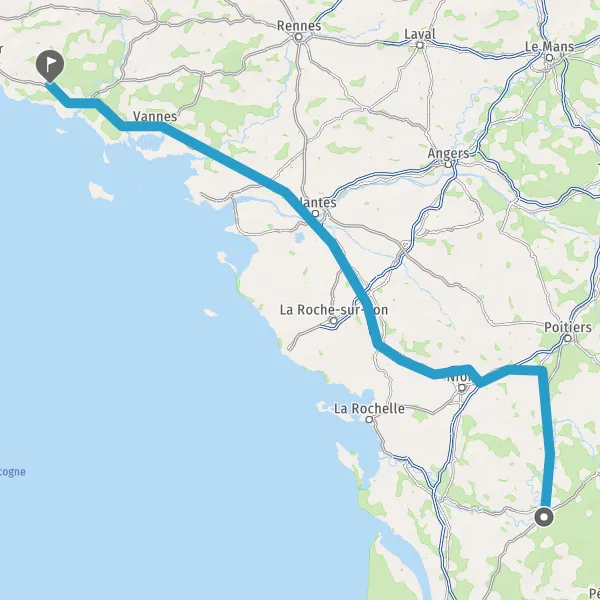 Prendre à droite et rejoindre A83. Continuer sur 150 kilomètres