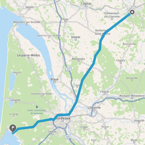 Prendre à droite et rejoindre N10 E606 (Route de Paris à Hendaye). Continuer sur 23 kilomètres