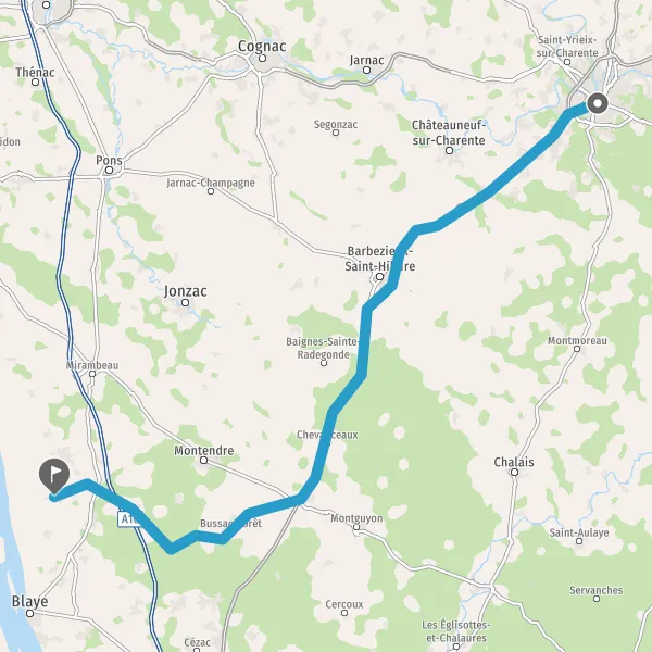 Tourner légèrement à gauche sur D157 (Route de Blaye) et continuer sur 4,4 kilomètres