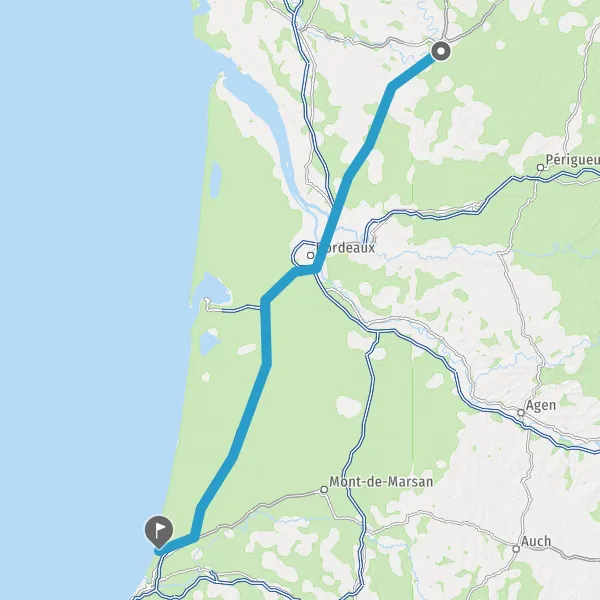 Prendre à droite et rejoindre A63. Continuer sur 154 kilomètres