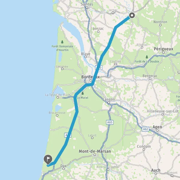 Prendre à droite et rejoindre A63. Continuer sur 130 kilomètres
