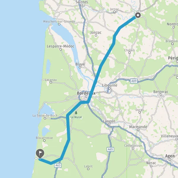Prendre à droite et rejoindre A63. Continuer sur 76 kilomètres