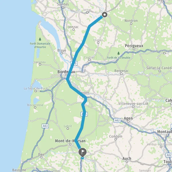 Prendre à droite et rejoindre A65. Continuer sur 99 kilomètres