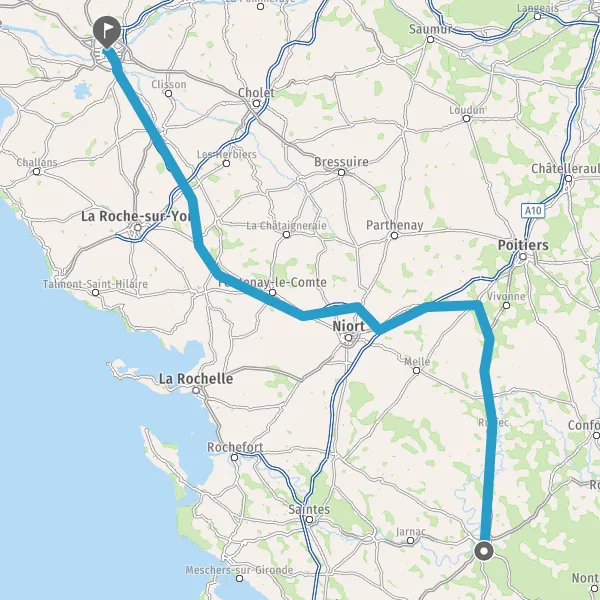 Prendre à droite et rejoindre A83. Continuer sur 150 kilomètres