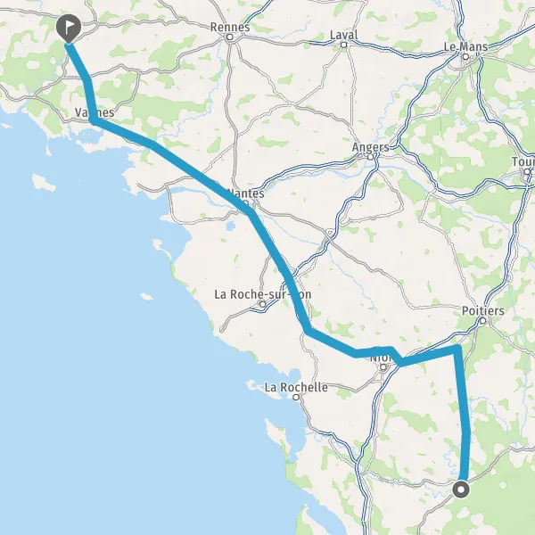Prendre à droite et rejoindre A83. Continuer sur 150 kilomètres