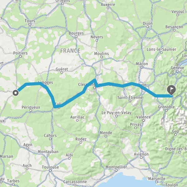 Prendre à droite et rejoindre A89 E70. Continuer sur 160 kilomètres