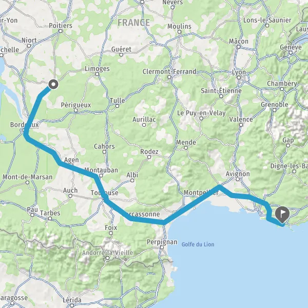 Prendre à gauche et rejoindre A62 E72. Continuer sur 224 kilomètres