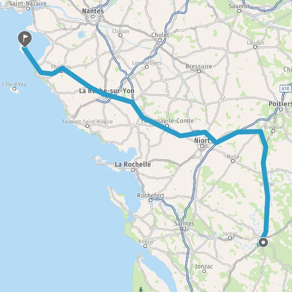 Au rond-point, prendre la 1ère sortie sur D948 (Route de Noirmoutier) et continuer sur 2,3 kilomètres