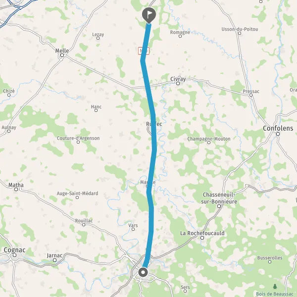 Prendre Rue de Montmoreau et continuer sur 170 mètres