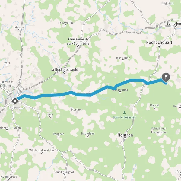 Au rond-point, prendre la 1ère sortie sur Avenue de Montbron et continuer sur 1,3 kilomètre