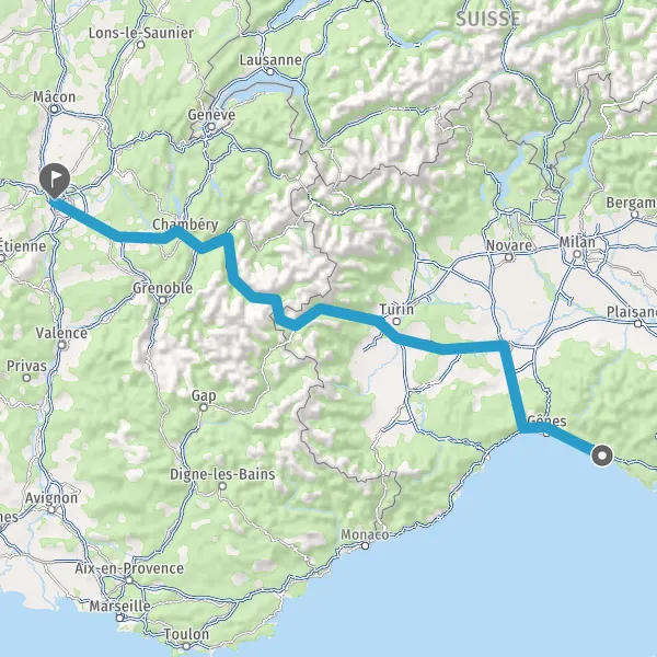 Prendre à droite et rejoindre A43 E70. Continuer sur 52 kilomètres