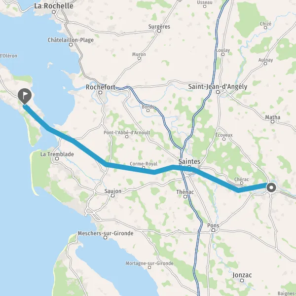 Tourner à gauche sur D83 (Route Basse de Saintes) et continuer sur 11 kilomètres