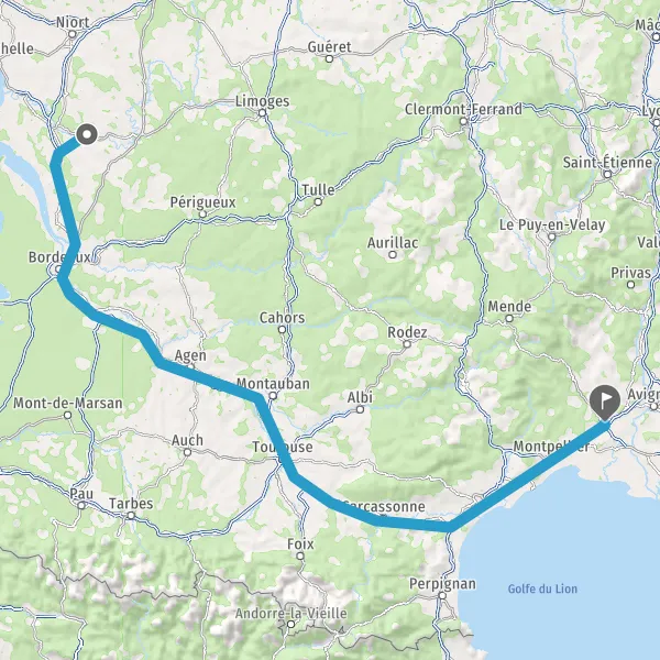 Prendre à gauche et rejoindre A62 E72. Continuer sur 224 kilomètres
