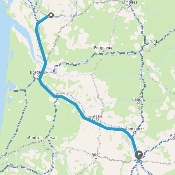 Prendre à gauche et rejoindre A62 E72. Continuer sur 224 kilomètres