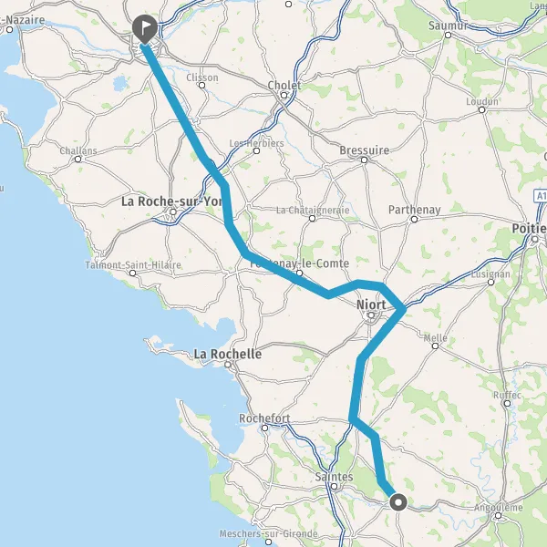 Prendre à droite et rejoindre A83. Continuer sur 150 kilomètres