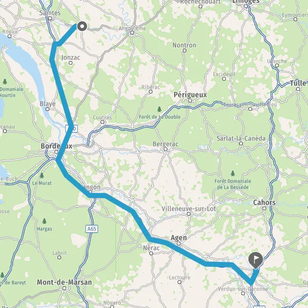 Prendre à gauche et rejoindre A62 E72. Continuer sur 191 kilomètres