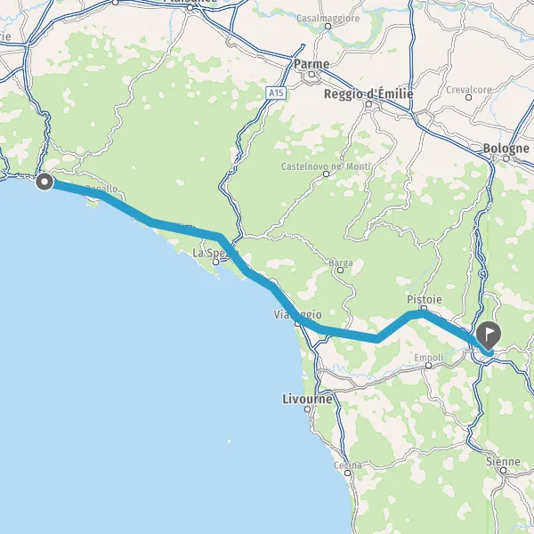 Sortir et rejoindre Diramazione Viareggio-Lucca. Continuer sur 400 mètres