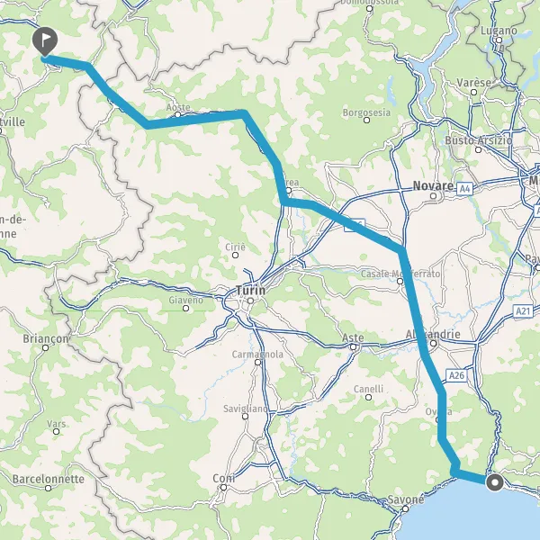 Continuer SS26dir SS26dir SS26dir T1 E25 (Piazzale del Traforo) sur 4,4 kilomètres