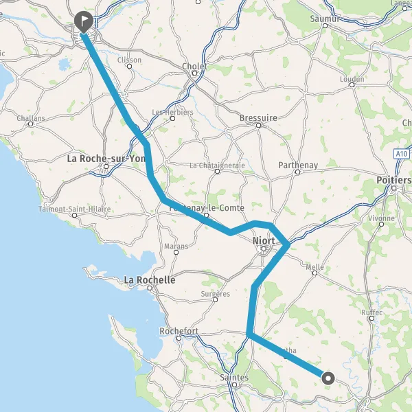 Prendre à droite et rejoindre A83. Continuer sur 150 kilomètres