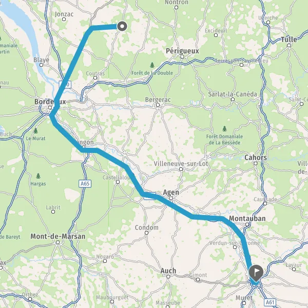 Prendre à gauche et rejoindre A62 E72. Continuer sur 224 kilomètres