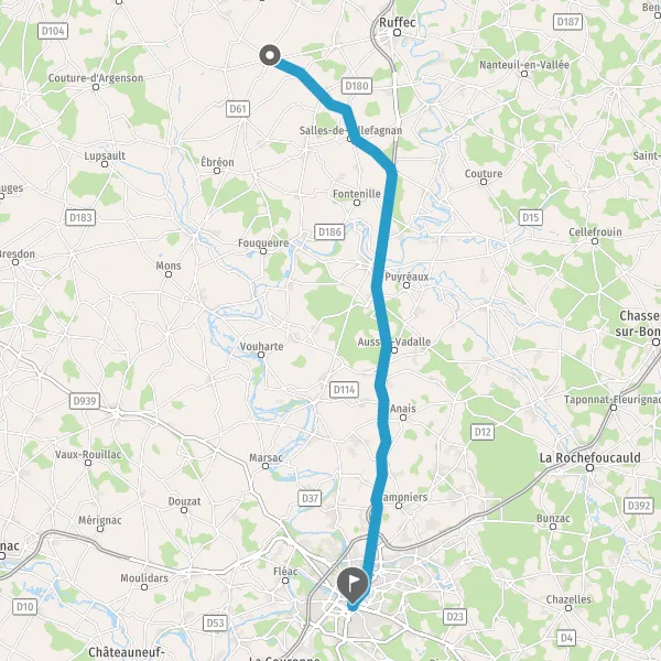 Tourner légèrement à gauche sur D27 (Route de Villefagnan) et continuer sur 2,5 kilomètres