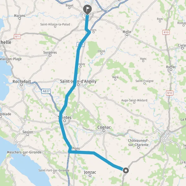 Prendre à droite et rejoindre D174 (Route d'Aiffres). Continuer sur 350 mètres