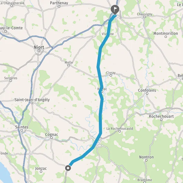 Avec le mode voiture, vous pouvez configurer vos options (type de véhicule, autoroute ou non, péage ou non, distance la plus courte), tout en ayant accès aux infos de circulation grâce à notre service d'info-trafic en temps réel. Ainsi faites des économies sur le coût ou la durée de votre voyage, en trouvant le trajet Barbezieux-Saint-Hilaire Poitiers adapté à vos besoins.