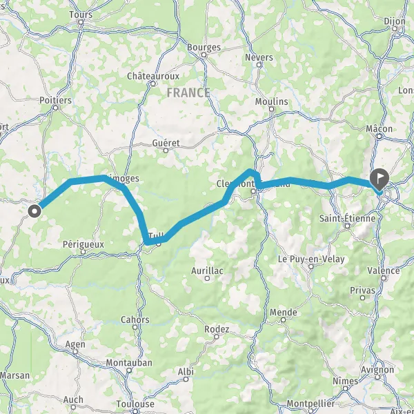 Prendre à droite et rejoindre A89 E70. Continuer sur 160 kilomètres