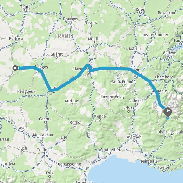 PérigueuxClermont-FerrandToulouseC.H.R.U. DupuytrenZone Industrielle Magré-RomanetLe Rousillon