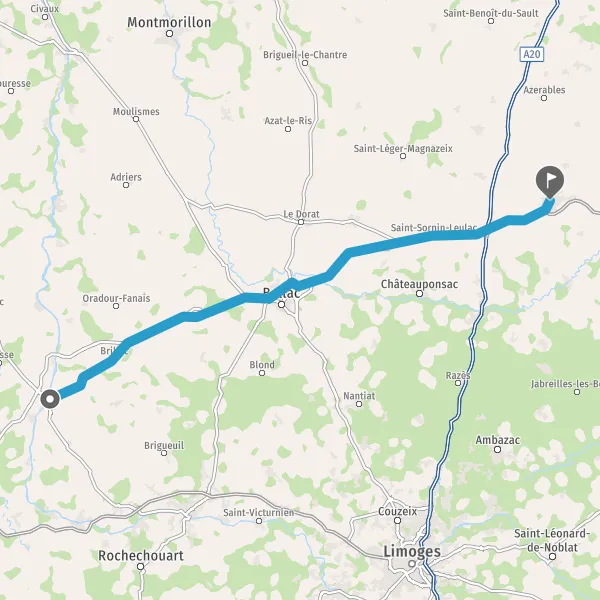 Au rond-point, prendre la 2ème sortie sur D951 (Avenue de Bellac) et continuer sur 5,4 kilomètres