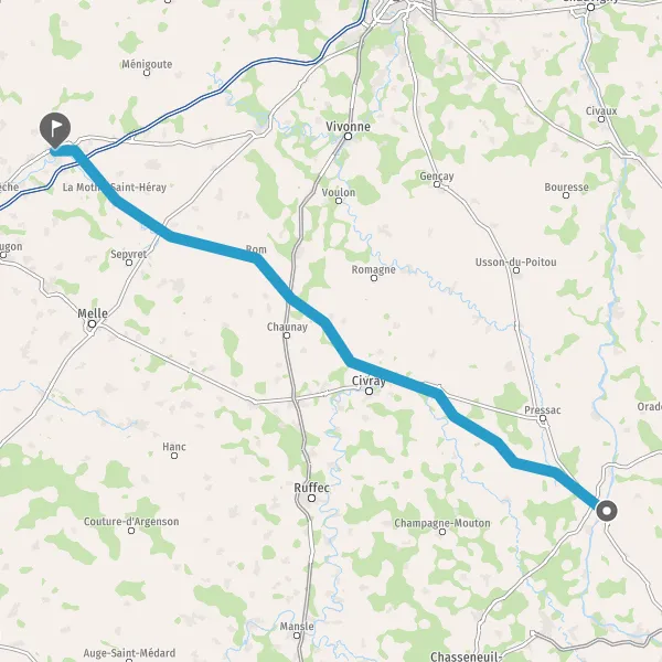 Tourner légèrement à gauche sur D14 (Route de Couhé) et continuer sur 750 mètres