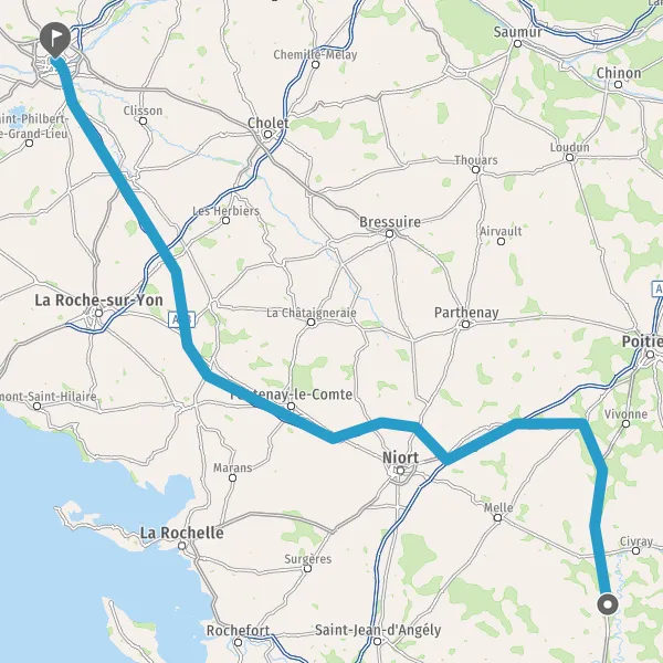Prendre à droite et rejoindre A83. Continuer sur 150 kilomètres
