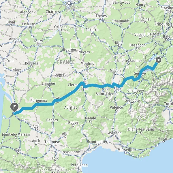 Prendre à droite et rejoindre A89 E70. Continuer sur 161 kilomètres