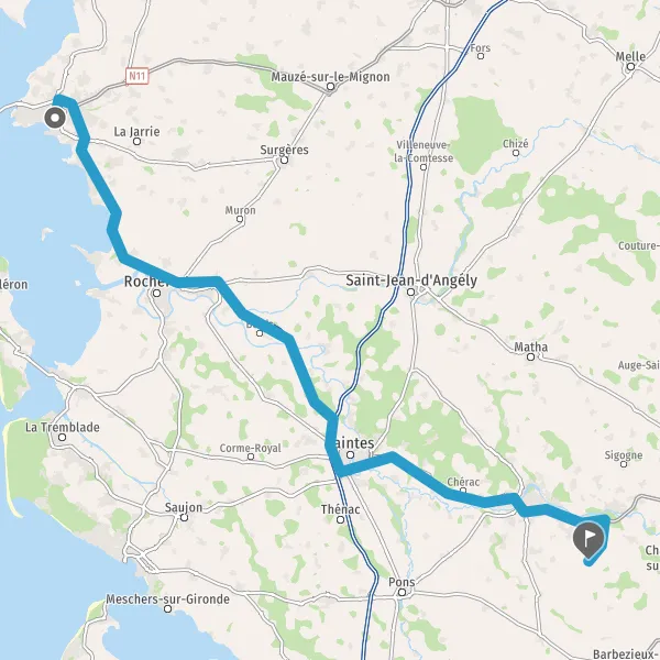 Prendre à droite et rejoindre A837 E602. Continuer sur 1,5 kilomètre