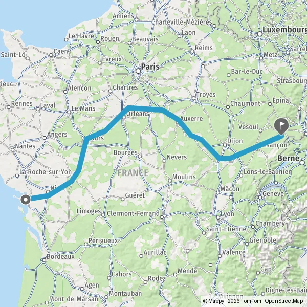 Prendre à droite et rejoindre A36. Continuer sur 165 kilomètres