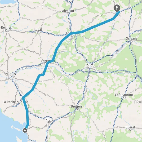 Prendre à droite et rejoindre A11 E60 E501. Continuer sur 203 kilomètres