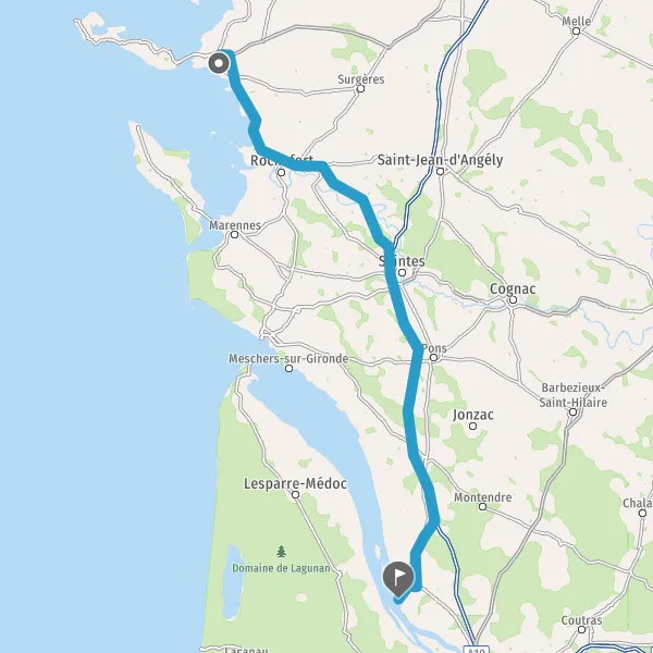 Prendre à droite et rejoindre A837 E602. Continuer sur 1,5 kilomètre