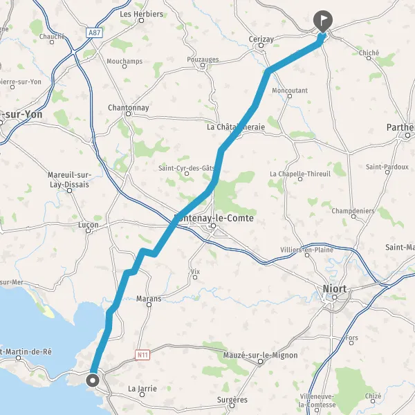 Au rond-point, prendre la 2ème sortie sur D105e D105 (Rue de La Rochelle) et continuer sur 500 mètres