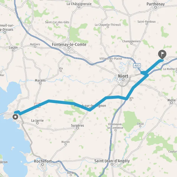 D611NantesAngersA83A10PoitiersLa CrècheSaint-Maixent-l'Ecole
