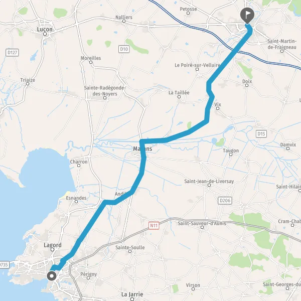 Tourner légèrement à gauche sur D9 (Rue de Marans) et continuer sur 1,5 kilomètre